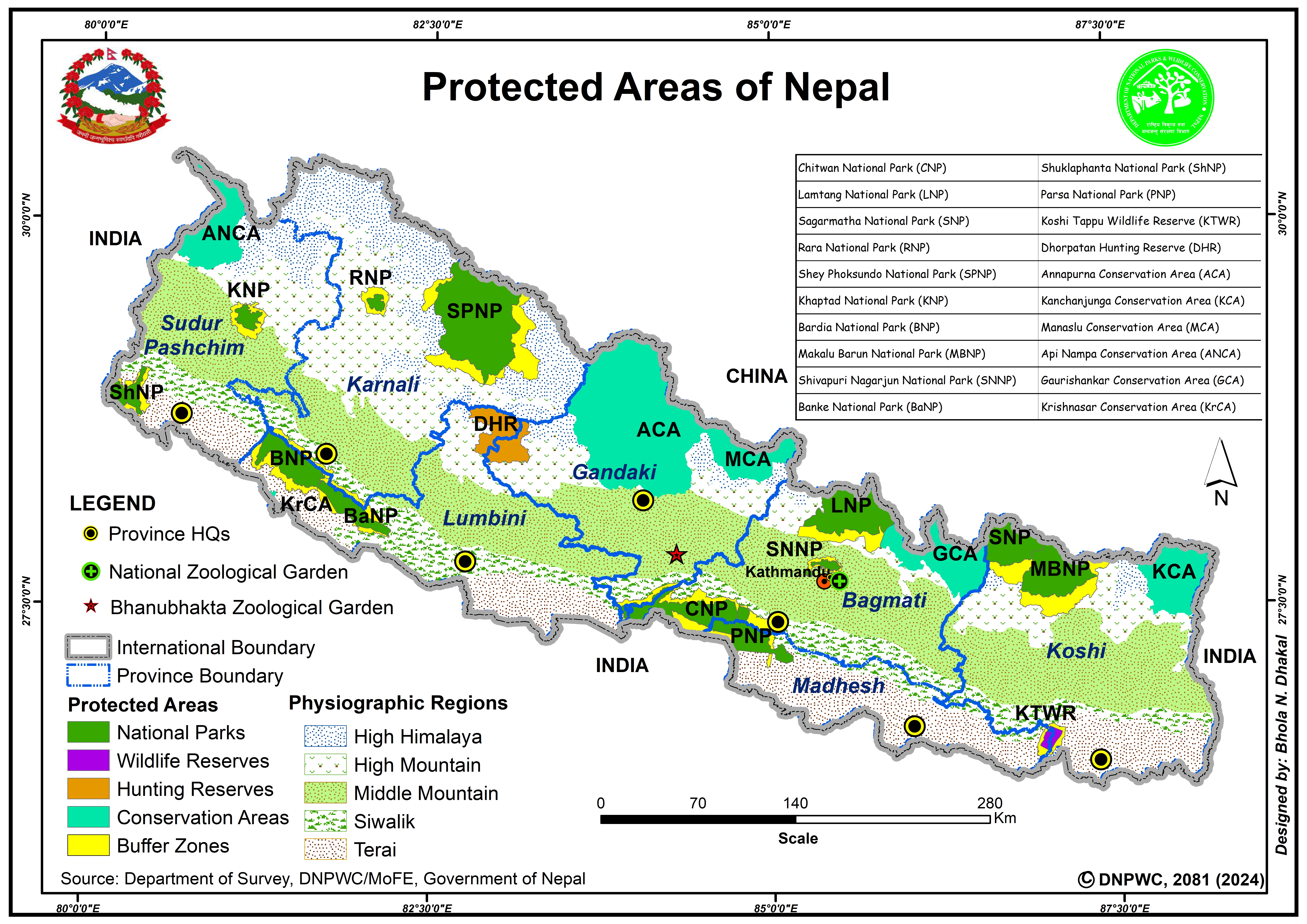 प्रकृति संरक्षण गर्ने उदेश्यले नेपालमा २० वटा संरक्षित क्षेत्रहरु स्थापना भएका छन् । हिमाली तथा उच्च पहाडी जलाधारदेखि तराईका बाढीग्रस्त मैदानसम्म देशका मुख्य मुख्य पारिस्थितिकीय प्रणालीलाई समेट्ने गरी संरक्षित क्षेत्रहरुको स्थापना गरिएको भएतापनि अझैपनि मध्य पहाडी क्षेत्रमा रहेका पारिस्थितिकिय प्रणालीहरुलाई समेट्ने गरी संरक्षित क्षेत्रहरुको स्थापना हुन सकेको छैन । तथापी हालसम्म घोषणा भएका संरक्षित क्षेत्रको क्षेत्रफललाई तुलना गर्दा जैविक विविधता महासन्धीको जैविक विविधता दशक (सन् २०१०-२०२०) मा राखिएको लक्ष्य (Aichi Target) लाई नेपालले यस भन्दा अगाडि नै पुुरा गरेको देखिन्छ । वन, वनस्पति र जैविक विविधता तथा समग्र प्राकृतिक सम्पदाको संरक्षण गर्ने काममा नेपालले दक्षिण एशियामा अग्रणी भूमिका खेलेको देखिन्छ । नेपालमा पाइने ११८ प्रकारका पारिस्थितिकीय प्रणालीहरु (Ecosystem) मध्ये ८० भन्दा बढी प्रकारका पारिस्थितिकीय प्रणालीलाई संरक्षित क्षेत्रहरुले समेटेको अनुमान छ ।
