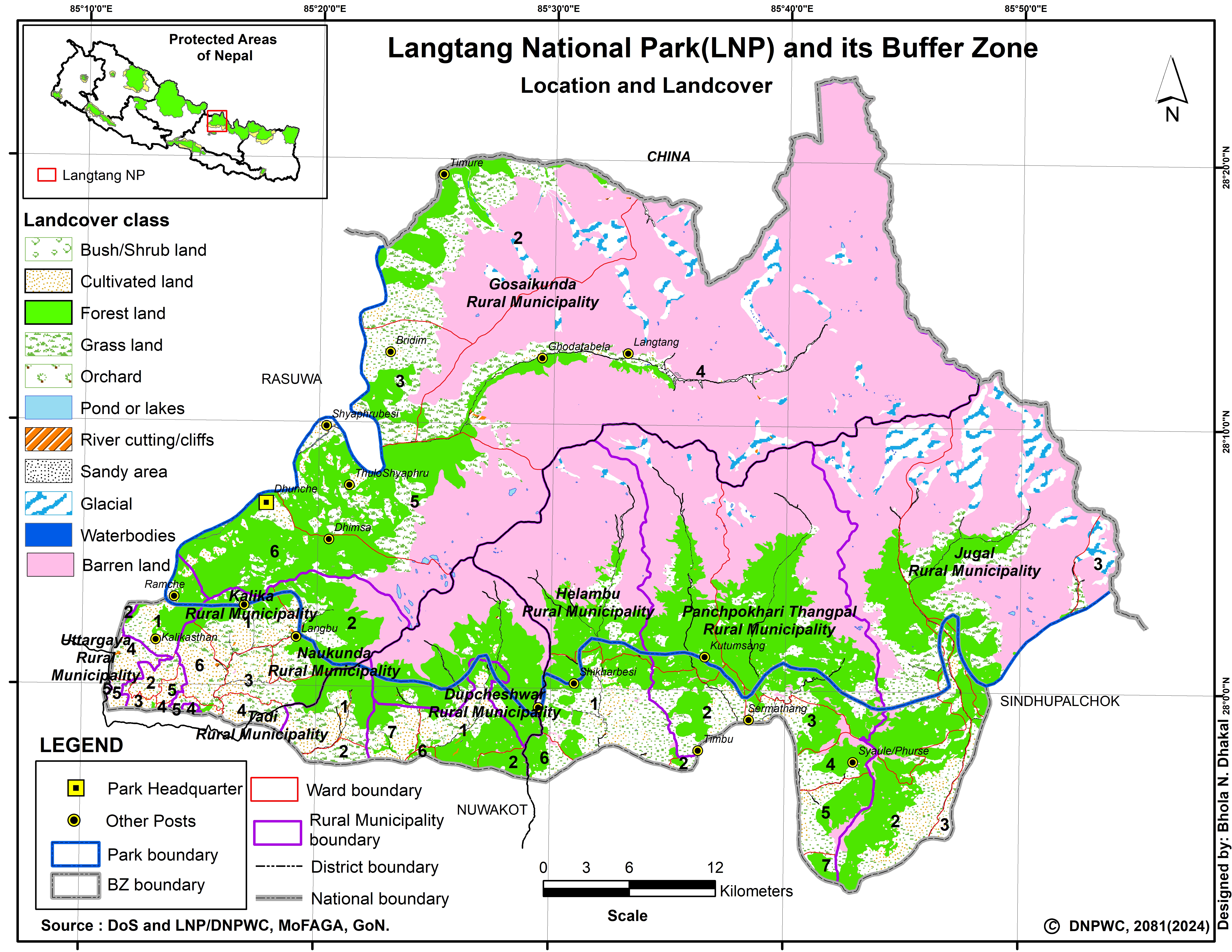 यो राष्ट्रिय निकुञ्ज रसुवा, नुवाकोट र सिन्धुपाल्चोक जिल्लाका केही भागहरूमा फैलिएर उत्तरमा मित्रराष्ट्र चीनको सिमानासम्म पुगेको छ । लाङटाङ लिरुङ (७,२४३ मि.) र हिमालचुली (७,८६४ मि.) जस्ता हिमालहरूले यसलाई प्राकृतिक सुन्दरता प्रदान गरेका छन् । यस निकुञ्जबाट निस्केका नदीहरू त्रिशूली पश्चिमतर्फ र सुनकोशी पूर्वतर्फ बगेका छन । यहाँ खाटे सल्ला, गब्रे सल्ला, गुरास आदिका जगंलहरू पाइन्छन । कोणधारी जंगलमा पाइने एकमात्र पतझड सल्ला (लाङटाङ सल्ला) यस निकुञ्जको विशिष्ट सम्पत्ति हो
