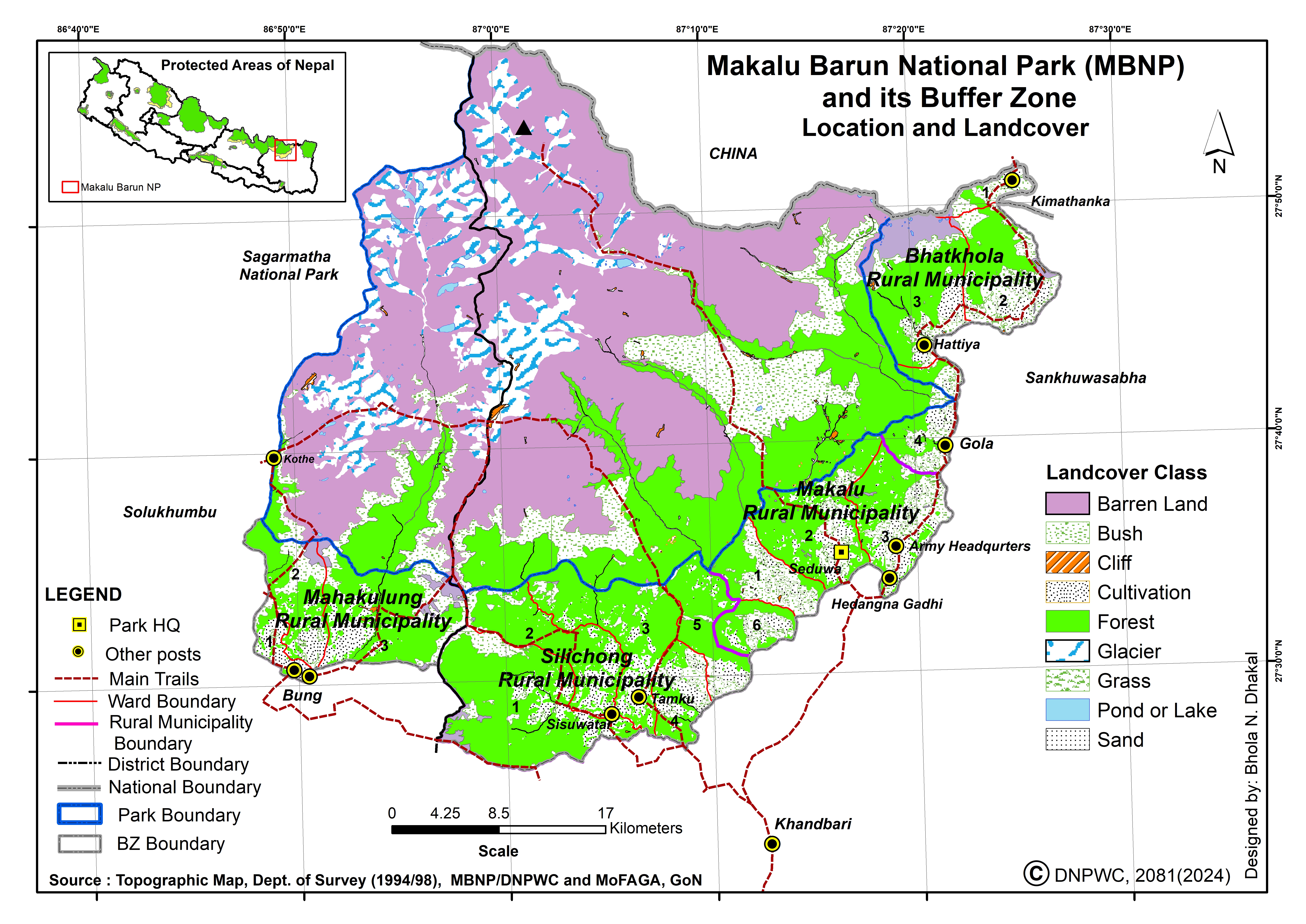यो राष्ट्रिय निकुञ्ज समुद्री सतहबाट ४३५ मि. उँचाइदेखि ४० कि.मि. उत्तर दक्षिण दूरीभित्रै ८,४६३ मि. अग्लो विश्वको पाँचौं अग्लो हिमाल मकालु हिमशिखरसम्म फैलिएको छ । यसलाई बृहत् सगरमाथा पारिस्थितिकीय प्रणालीको एउटा महत्वपूर्ण अङ्ग मानिएको छ । यसको पश्चिममा सगरमाथा राष्ट्रिय निकुञ्ज र उत्तरमा चीनको स्वशासित क्षेत्र तिब्बतको चोमोलोङ्मा प्रकृति संरक्षण क्षेत्र पर्दछन् । यो निकुञ्ज Sacred Himalayan Landscape जैविक मार्गको हिसाबले पूर्वमा कंचनजंघा संरक्षण क्षेत्र र गुराँसको राजधानी मानिने मिल्के जलजले क्षेत्रसँग जोडिएको छ । अविश्वसनीय भिरालो भू-बनोट तथा पूर्वी हिमालयको भारी मनसूनी वर्षाले (१००० देखि ४००० मि.मि. प्रतिवर्ष यो निकुञ्ज असाधारण जैविक विविधता तथा जडिबुटी र वनस्पतिहरूको भण्डारको रूपमा रहेको छ ।