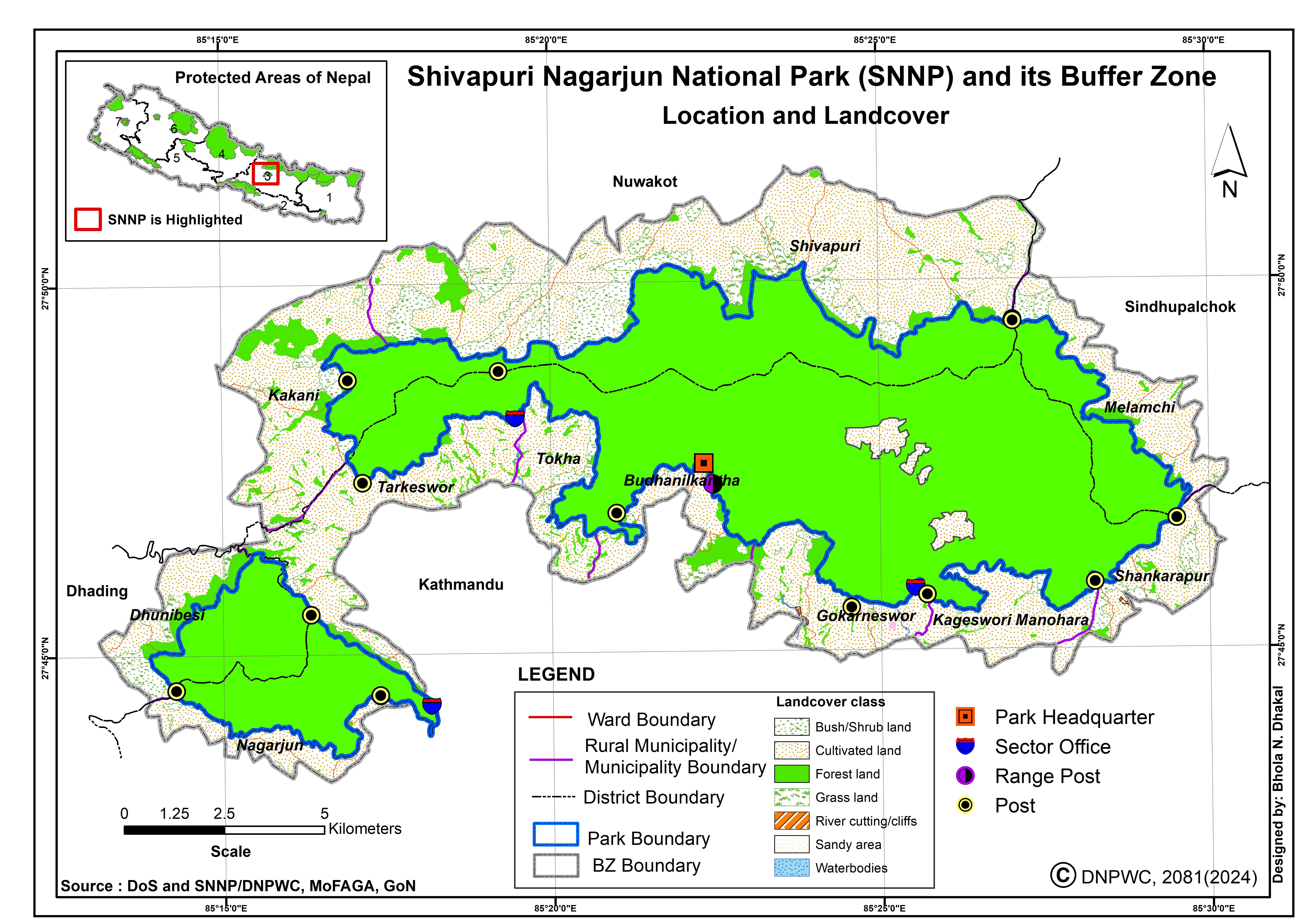 काठमाडौँ शहरबाट नजिक रहेको यो निकुन्ज पूर्वमा चिसापानी देखि पश्चिममा ककनीसम्म फैलिएको छ । शिवपुरी जलाधार क्षेत्रको रूपमा सन् १९८९ मा स्थापित यसको क्षेत्रफल १४४ वर्ग कि.मि. थियो । सन् २००२ मा यसलाई शिवपुरी राष्ट्रिय निकुञ्ज नाम दिइयो भने वि.सं. २०६५ सालमा नागार्जुन क्षेत्रको १५ वर्ग कि.मि. क्षेत्रफल समेटेर १५९ वर्ग कि.मि. क्षेत्रफलको शिवपुरी नागार्जुन राष्ट्रिय निकुञ्ज बनाइएको छ ।